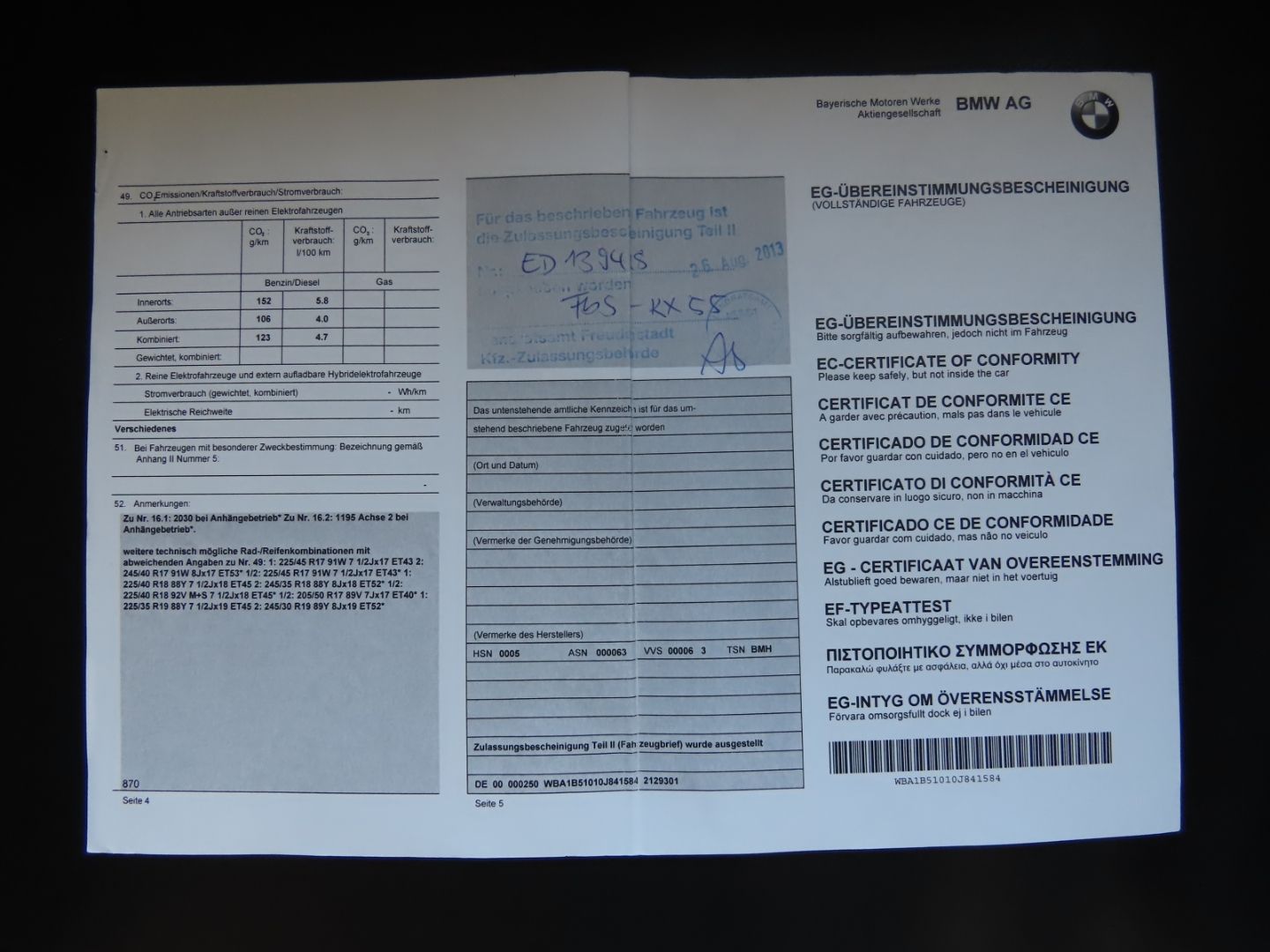 Airbags, Anti-Lock Braking System (ABS), Automatic Headlight Sensor, Breakdown Service Kit, Central Locking, Diesel Particulate Filter, Electronic Stability Program, Front Fog Lights, Headlight Washer System, Immobilizer Security System, ISOFIX Child Seat Anchor Points, Roadworthy, Tire Pressure Monitoring System, Unrepaired Damage