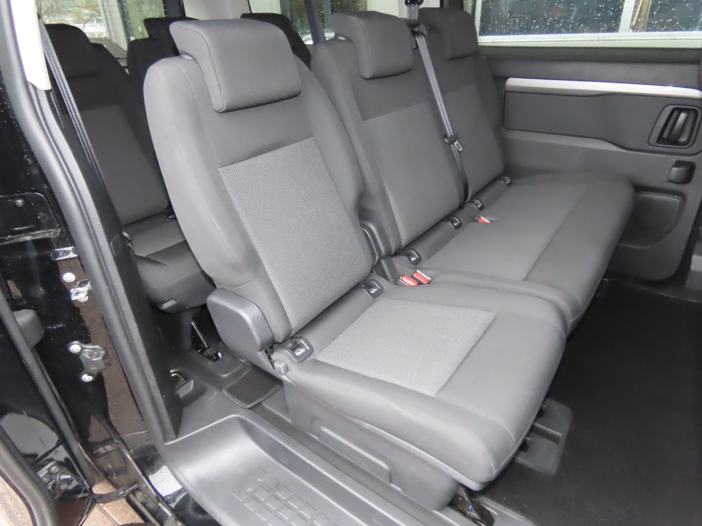The vehicle features tinted windows or privacy glass that reduces visibility into the interior, providing enhanced privacy for passengers and protection from sunlight and UV rays.