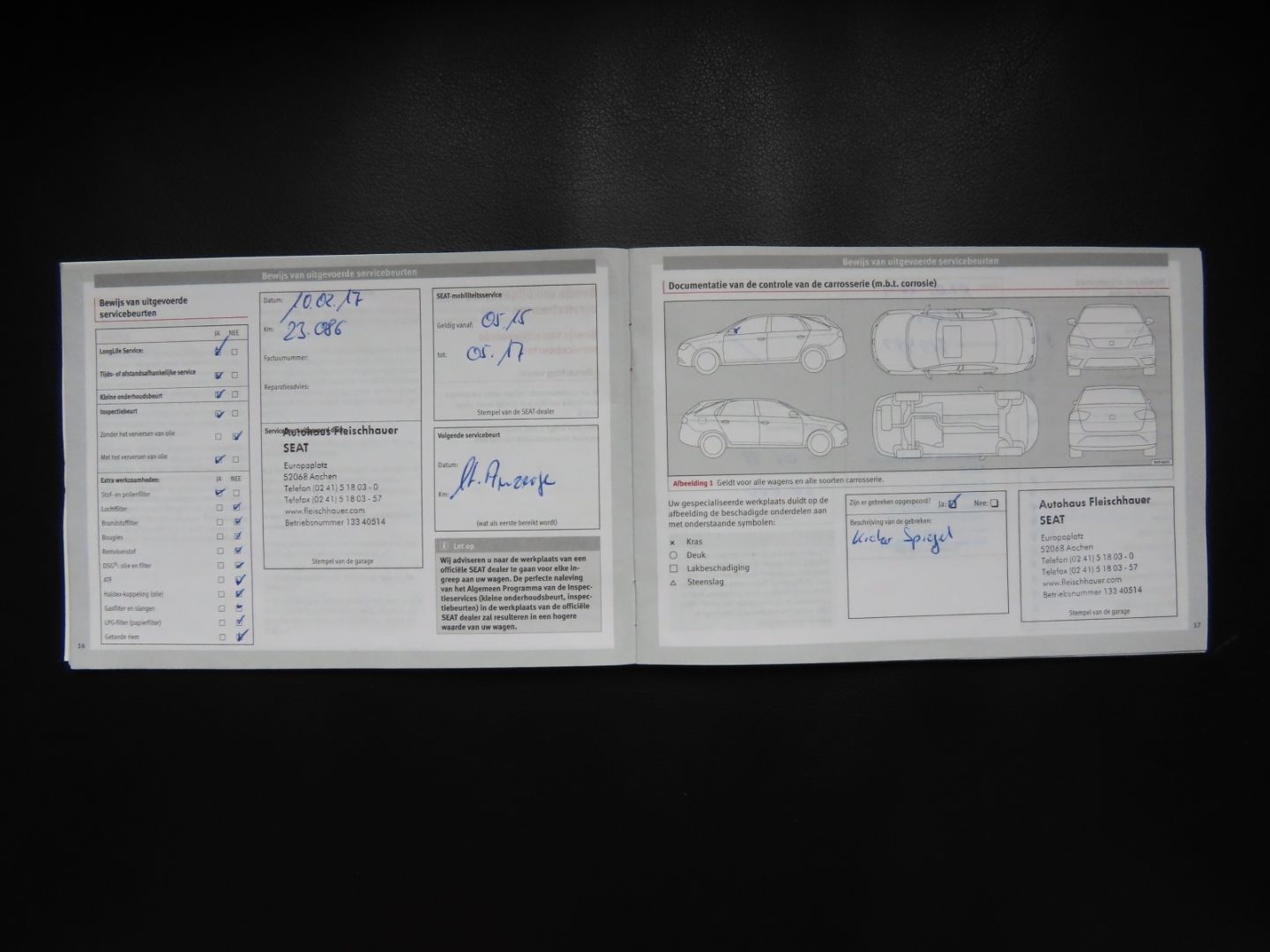 - Complete SEAT service book maintenance