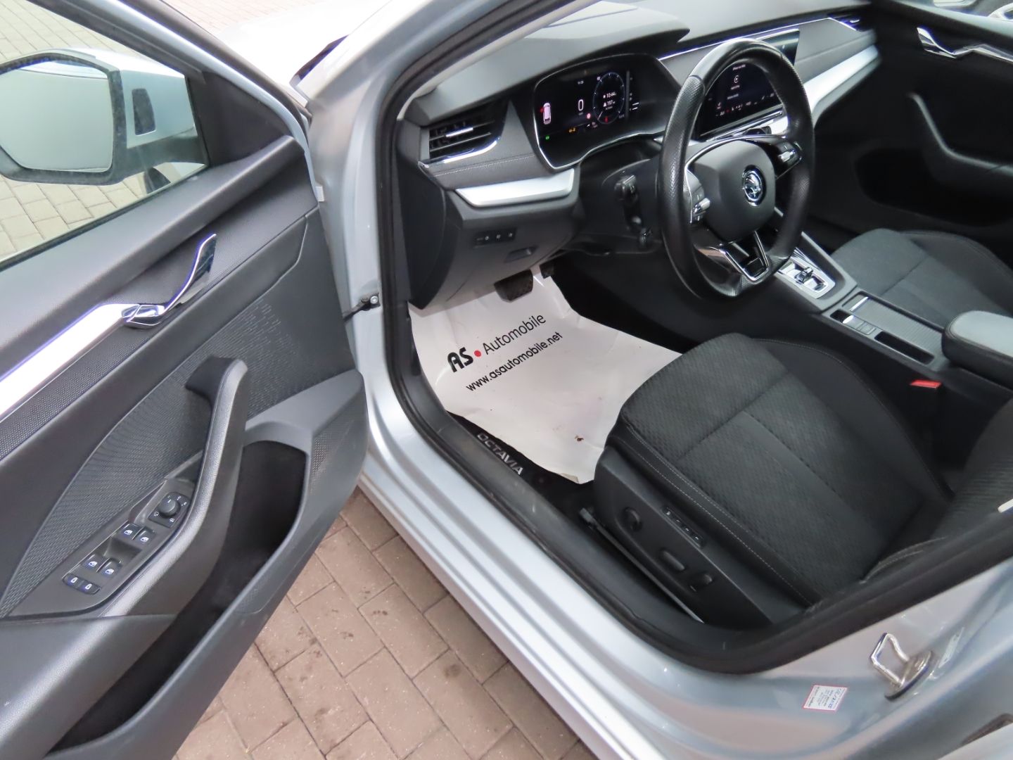 The instrument cluster behind the steering wheel is fully digital, displaying all driving information on a customizable screen rather than traditional analog gauges.