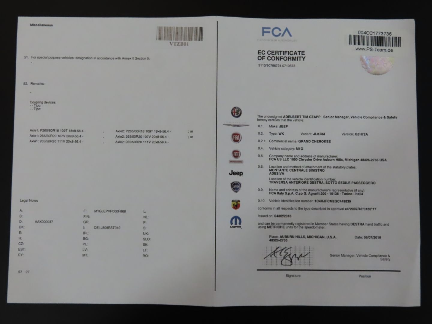 Il veicolo è idoneo alla circolazione e soddisfa tutti i requisiti di sicurezza e tecnici per l'utilizzo su strada.