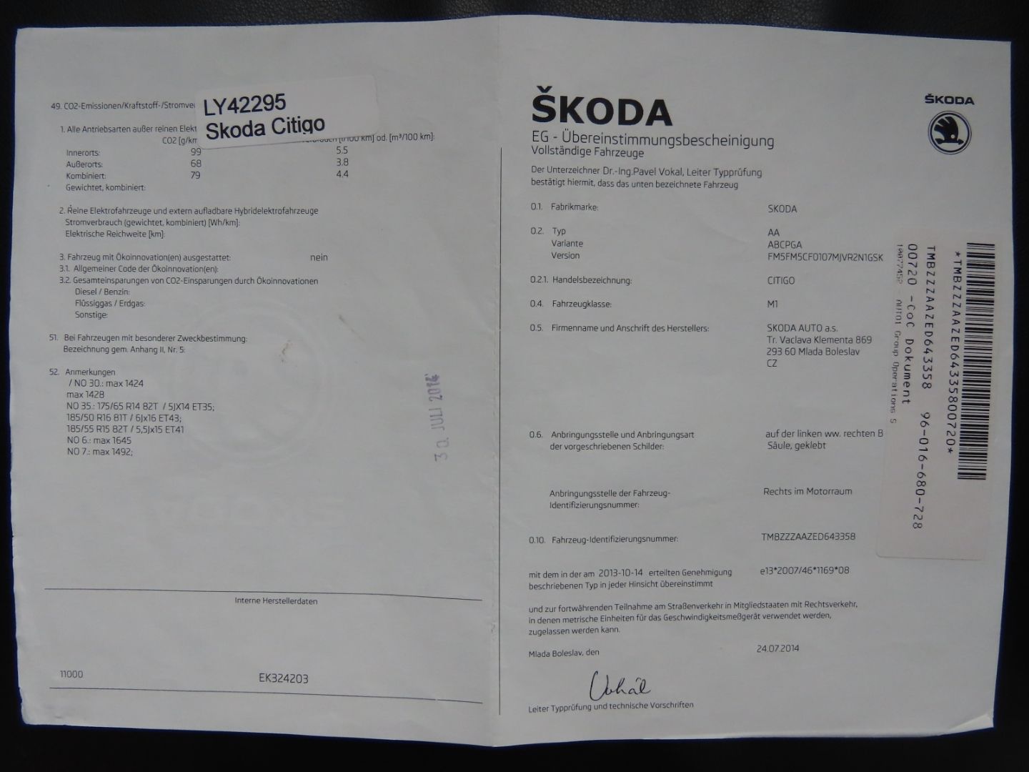 Il veicolo viene consegnato con un nuovo certificato di revisione.
