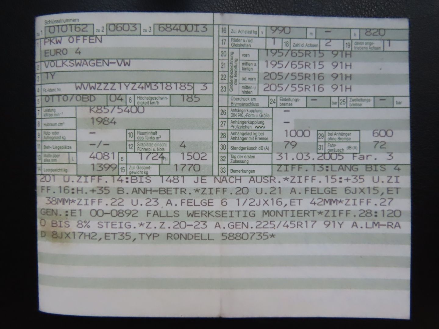 Il veicolo viene consegnato con un nuovo certificato di revisione.